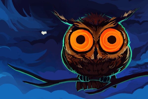 Night drawing of an owl with wild eyes1920 x 1080, 210 kB