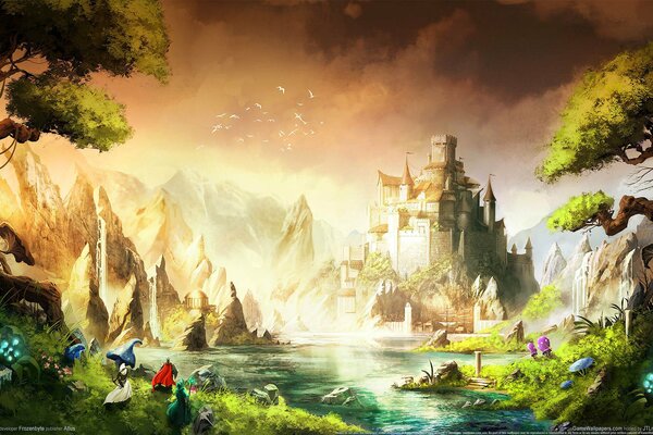 Painted landscape with river, waterfall and castle1920 x 1200, 470 kB