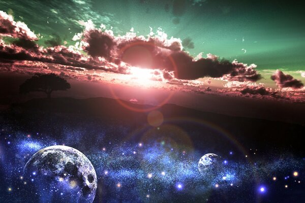 planet art sunset tree nature sky sun clouds land1920 x 1080, 464 kB