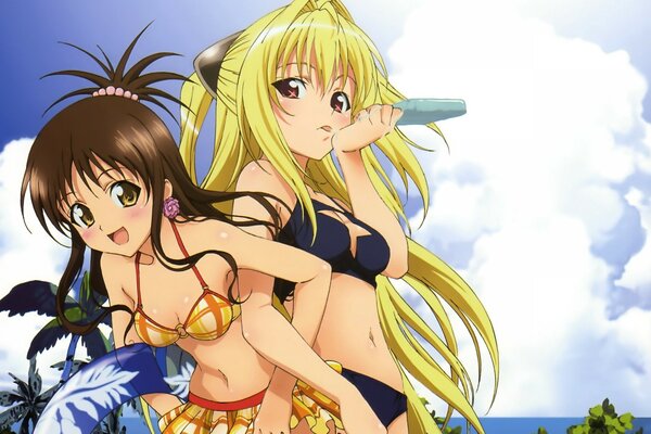 blonde hair bikini swimsuit long hair gold darkness brown hair