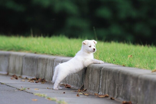 Cute puppy is standing on the road1920 x 1200, 328 kB