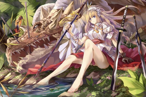 art girl dragon fire horn lava weapon sword section sphere leather1920 x 1133, 223 kB