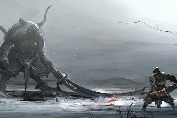 art battle monster horn warrior blood winter snow weapon2278 x 1200, 241 kB