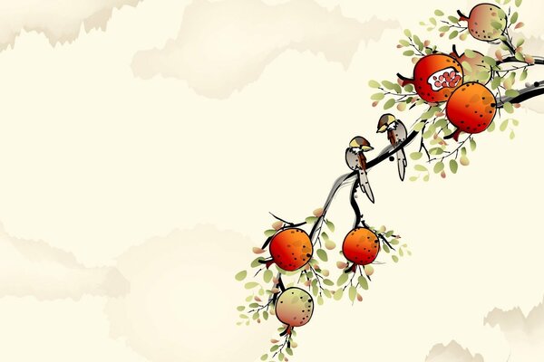 art watercolor branch garnet bird1920 x 1080, 159 kB