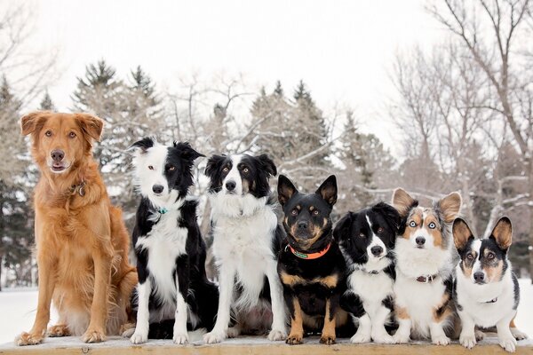 Different dogs on a walk in the snowy forest1920 x 1200, 393 kB