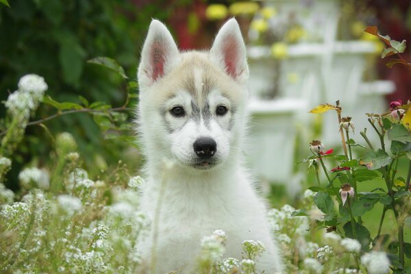 A beautiful puppy among various flowers and plants1920 x 1200, 313 kB