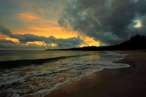 landscape nature sea water wave waves sand beach summer foliage tree night sky clouds background wallpaper widescreen full screen hd wallpapers fullscreen1921 x 1200, 267 kB