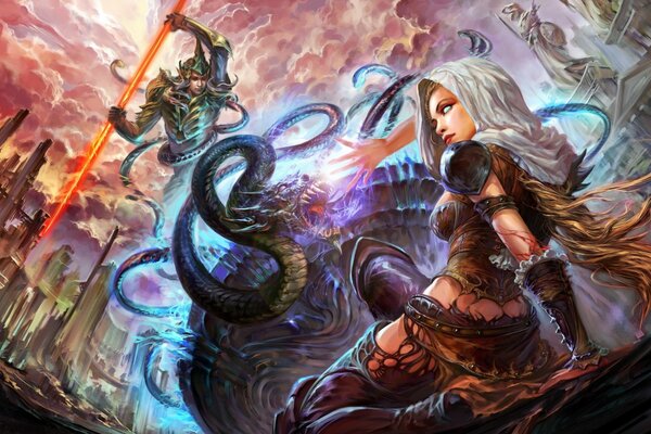 forsaken world art girl dragon battle spear man1920 x 1200, 568 kB