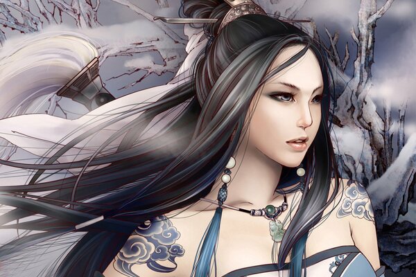 girl warrior wind winter fantasy1375 x 1100, 308 kB