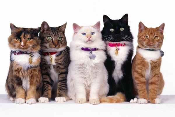 cats cat five collars white black red striped spotted sitting together eyes mustache1920 x 1200, 255 kB