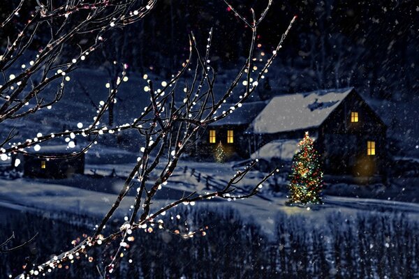 A house on a winter night with light in the windows1920 x 1275, 317 kB
