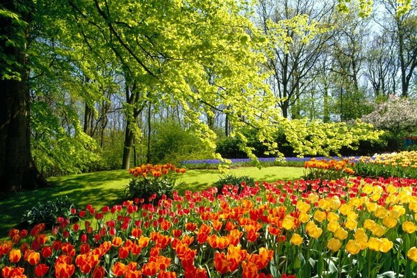 The edge of the forest is covered with a tulip carpet.1920 x 1080, 683 kB