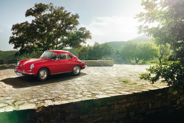 porsche 356c 1600 coupe 1963 front classic tree sky