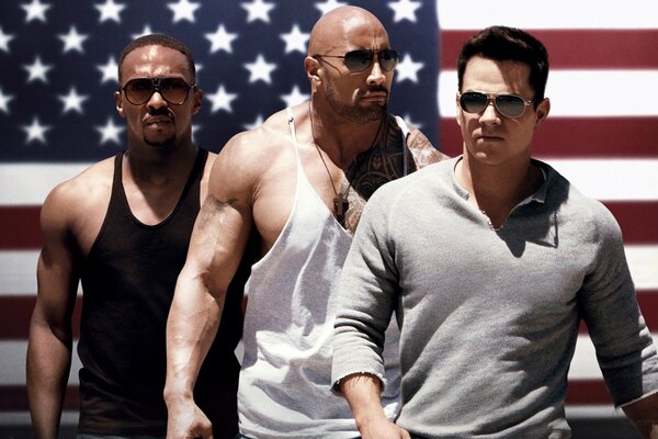 pain & gain blood and sweat : anabolic mark wahlberg daniel lugo dwayne johnson paul doyle anthony mackie adrian doorbal flag united states muscles sunglasses cross1920 x 1200, 408 kB