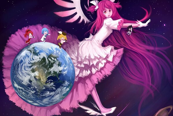 pink hair wings crossover space long hair dress akemi homura1650 x 1275, 464 kB