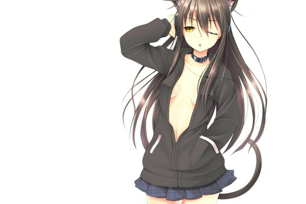animal ears white gloves collar thighhighs shorts catgirl navel tail1654 x 1169, 254 kB