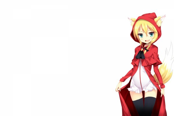blonde hair animal ears red riding hood long hair white fang tail blush thighhighs1920 x 1200, 128 kB