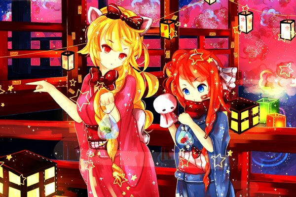 blue eyes blonde hair animals japanese clothes kimono red eyes animal ears1920 x 1632, 739 kB