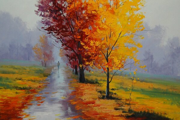 art artsaus landscape autumn passer track yellow leaves alley1920 x 1302, 472 kB