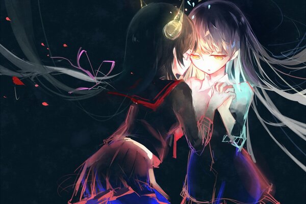art sevten ashkeroth girls horn schoolgirl form light anime