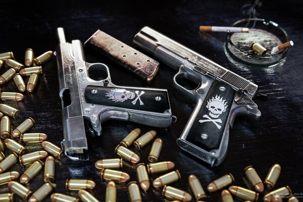 colt 1911 guns clip cartridges sleeve ashtray cigarette1920 x 1200, 400 kB