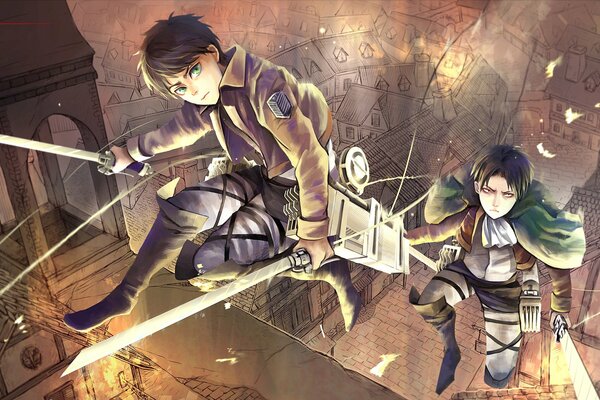 attack on titan shingeki no kyojin eren jaeger rivaille levi man weapon roof1923 x 1193, 534 kB
