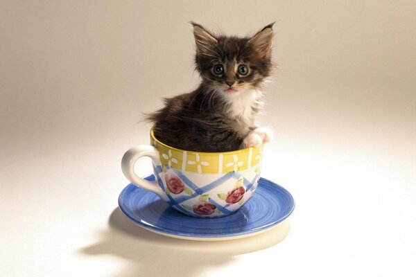 A kitten sitting in a cup and saucer1920 x 1200, 241 kB