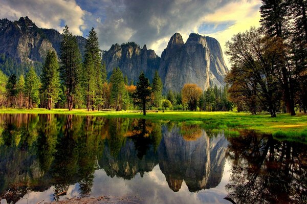yosemite national park usa united states yosemite california lake water reflection tree mountain nature2048 x 1196, 680 kB