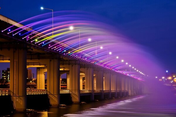 asia korea town seoul banpobridge rainbow rainbow fountain bridge night lights