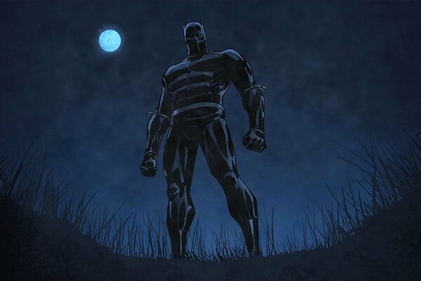 marvel comics black panther t'challa suit pose grass night moon
