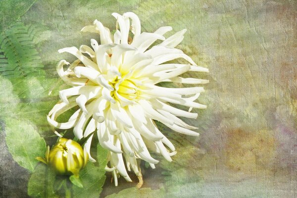 An unusual flower with green leaves and a yellow center1920 x 1200, 153 kB