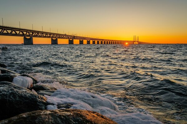 sweden skane bunkeflostrand øresunds bridge sunset bridge1920 x 1200, 216 kB