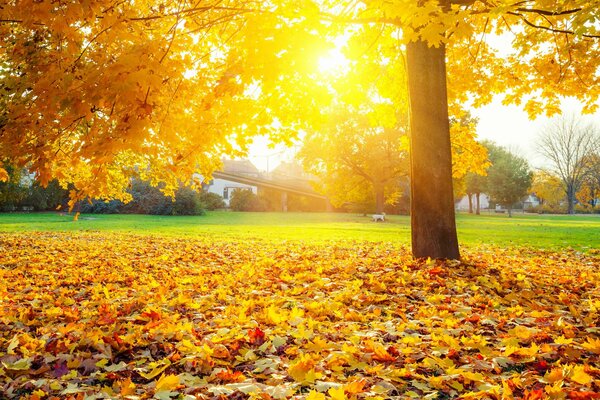 autumn tree lawn grass leaves yellow sun1920 x 1536, 1038 kB
