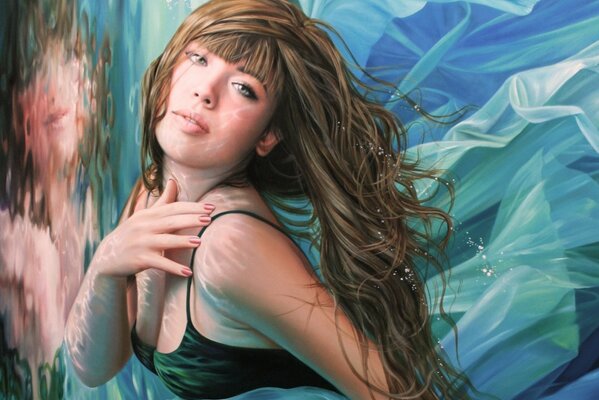 christiane vleugels art girl face view lips hair bang hands water reflection1920 x 1339, 338 kB