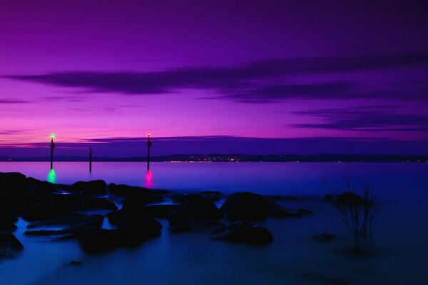 switzerland lake constance night lights reflection beach stones lilac purple sky clouds1920 x 1280, 120 kB