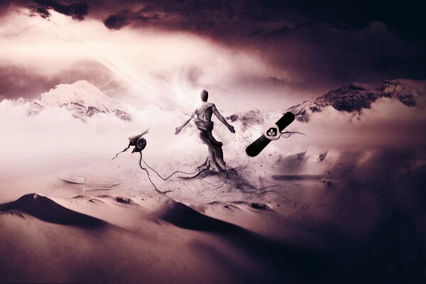 desktop wallpaper art creative sands dunes the roots man helmet snowboarding fantasy2133 x 1200, 238 kB