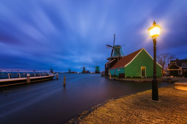 the netherlands village houses mill river light lighting night blue sky1920 x 1280, 284 kB