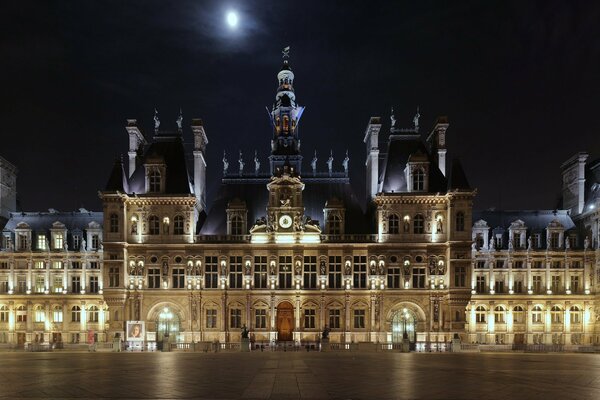 hotel de ville paris france hôtel de ville hotel square panorama night lights lighting moon light sculpture watches3116 x 1200, 614 kB