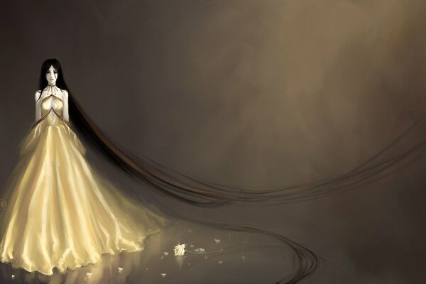 art denoro girl background rose flower petals long hair dress