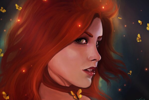 Yellow butterflies fly around the little mermaid with red hair1920 x 1333, 168 kB