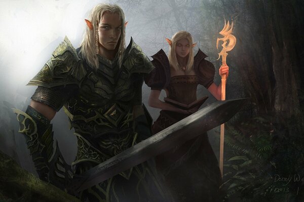 art donny wei forest elves girl guy warrior magician sword staff1920 x 1130, 274 kB