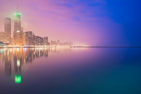 chicago buildings skyscrapers lake night lights town lights exposure1920 x 1200, 161 kB