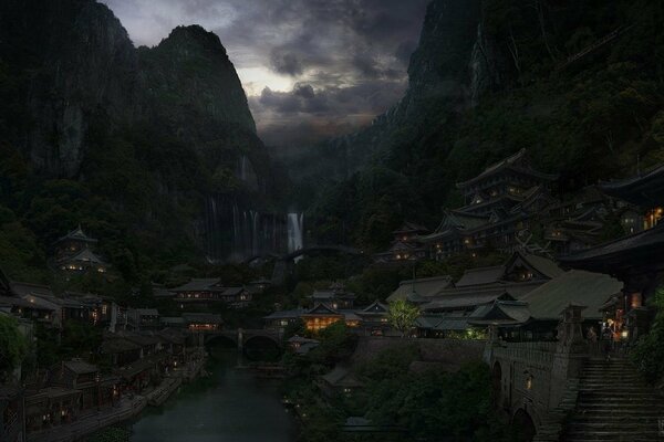 Animated Asian village in the mountains1920 x 1200, 317 kB