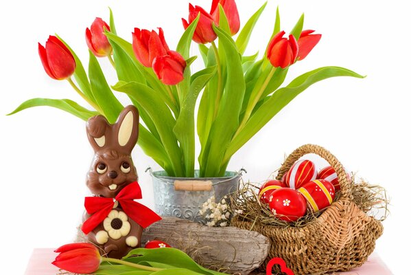 easter eggs flowers tulips bunny red1920 x 1509, 414 kB