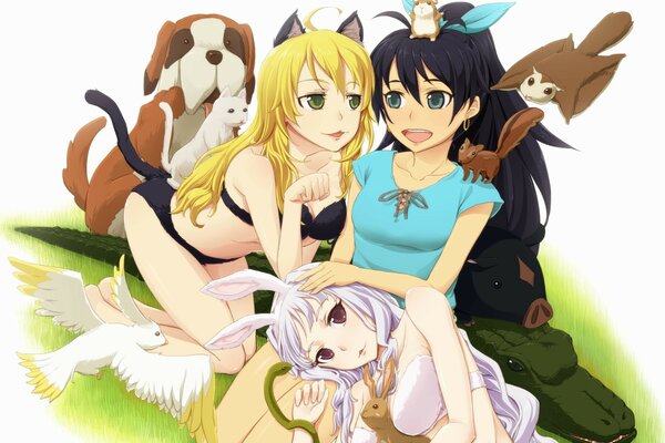 hoshii miki blue eyes brown eyes ganaha hibiki shijou takane blonde hair black hair animals green eyes white hair catgirl1754 x 1240, 318 kB