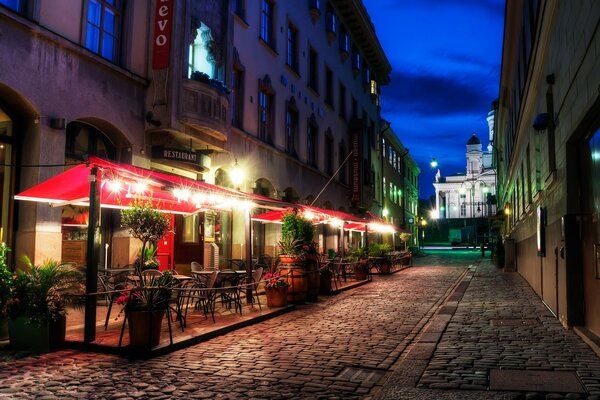 Evening street with restaurant in Finland Helsinki