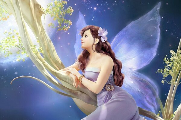 fairy flower girl tree moon art decoration branch night wings1920 x 1155, 435 kB