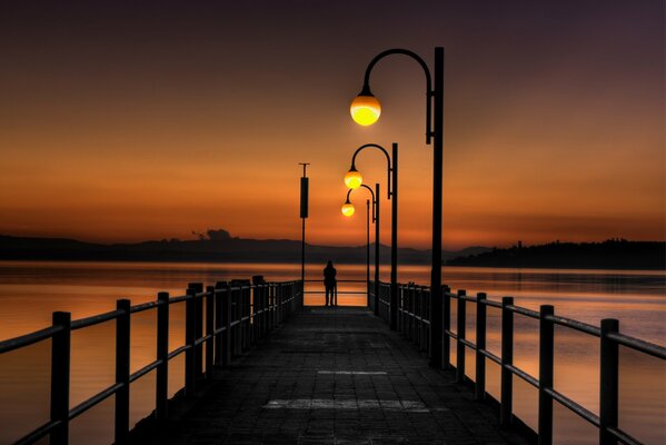 sunset bridge pier sea lights1920 x 1350, 224 kB
