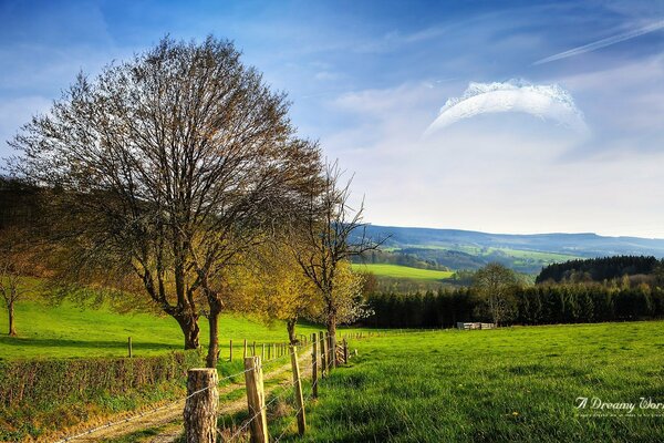 dreamy world the field road fence tree