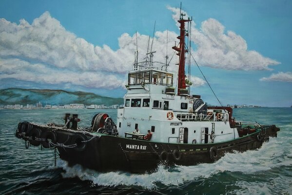 pattern landscape sky sea ship sailboats boat sail fishermen